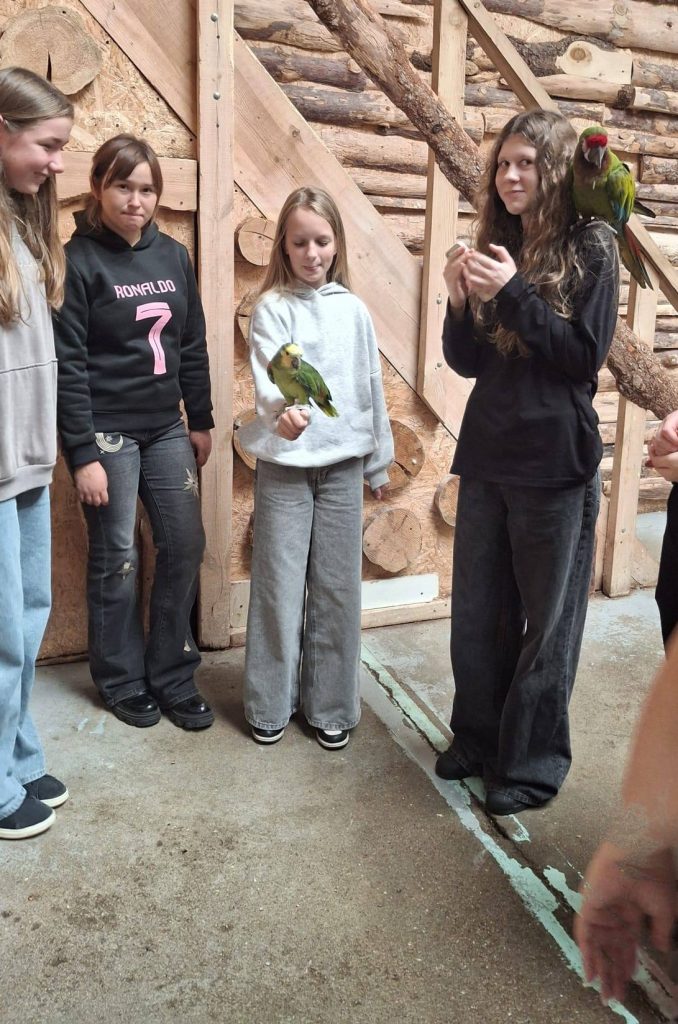 Dowiedzieli się mnóstwa ciekawostek o ich życiu, zwyczajach i roli w przyrodzie. Następnie udali się do kolorowego świata Papugarni, gdzie mogli zobaczyć, nakarmić, wziąć na rękę przepiękne, barwne papugi ![]()