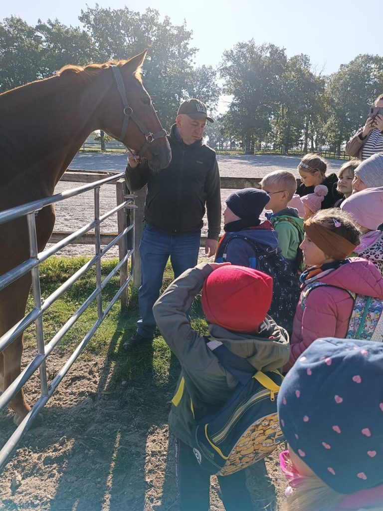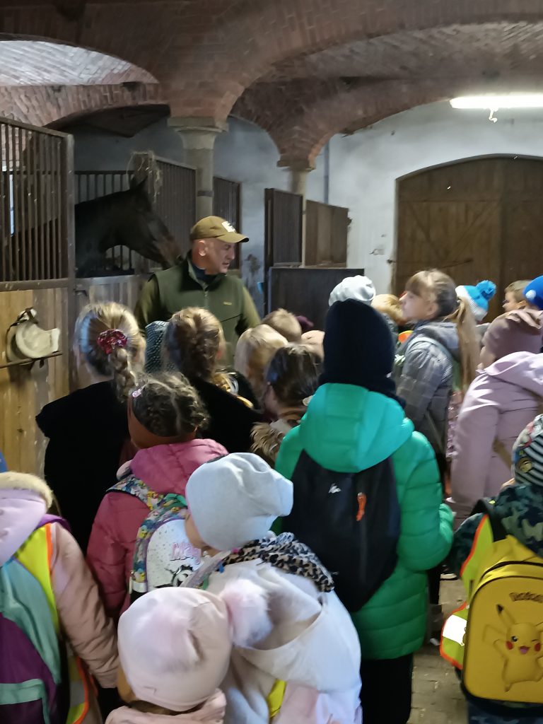 We wtorek uczniowie z oddziału przedszkolnego i klas I-III udali się na wycieczkę do Turzyna. Zwiedzili tam Muzeum Przyrody i Łowiectwa, w którym oglądali dioramę przedstawiającą zwierzęta i ptaki w ich naturalnym środowisku, kolekcję przyrodniczą, łowiecką, kolekcję fotografii, grafik, oraz filatelistyczną. Po obejrzeniu eksponatów uczniowie przeszli do stajni i na padoki, gdzie uzyskali wiele cennych informacji o opiece nad końmi. Panowie, którzy nas oprowadzali pochwalili naszą grupę za posiadaną wiedzę i ilość zadawanych pytań 🙂