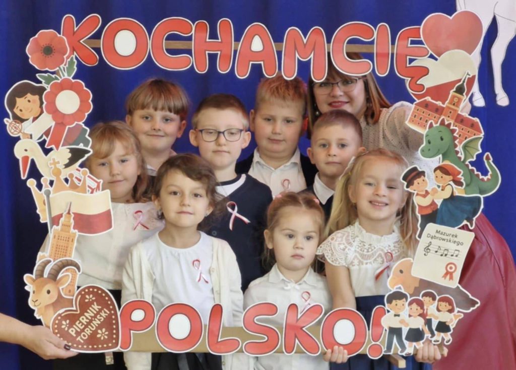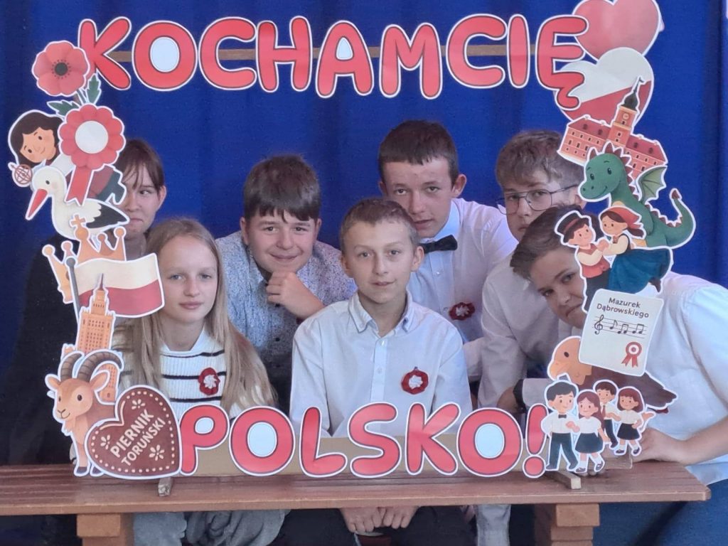Dodatkowo klasa 7 przygotowała wyjątkową foto-ramkę pod hasłem „Kocham Cię Polsko”, przy której uczniowie mogli zrobić sobie pamiątkowe zdjęcia.