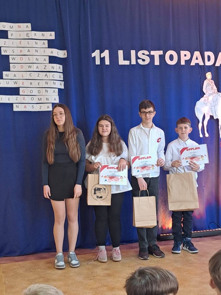 Podczas akademii uczniowie zaprezentowali program artystyczny poświęcony drodze Polski do odzyskania niepodległości. Występy obejmowały recytację wierszy patriotycznych, inscenizacje historyczne oraz pieśni narodowe, które przypomniały o trudnych losach ojczyzny, bohaterstwie Polaków i znaczeniu wolności. Młodzi artyści z dużym zaangażowaniem i powagą oddali hołd tym, którzy walczyli o niepodległą Polskę.