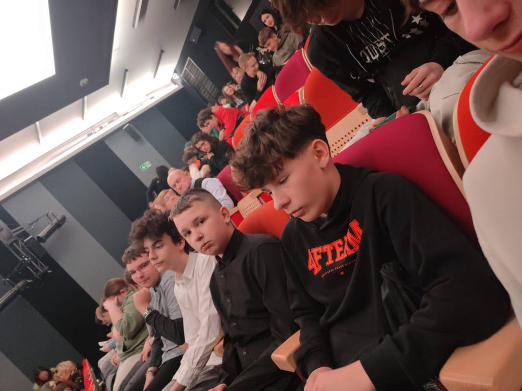 Uczniowie klasy ósmej wybrali się do Bydgoszczy na spektakl „Escape room”. Spektakl ten powstał w ramach projektu „Wykluczenie nie ma MOWy! 2 – etap I”, a przygotowany został przez wychowanki Młodzieżowego Ośrodka Wychowawczego im. Ireny Sendlerowej w Samostrzelu. Spektakl opowiadał o zmaganiach z własnymi ograniczeniami, poszukiwaniu akceptacji, sile wspólnoty, o trudnych emocjach i prób odnalezienia właściwej drogi.