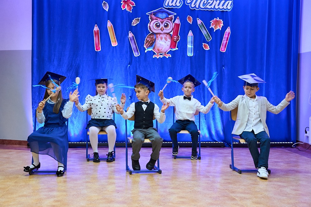 Podczas uroczystości, 30 października br., uczniowie zaprezentowali piękny program artystyczny. Nie zabrakło wzruszających wierszyków, radosnych piosenek oraz energicznego tańca, które wywołały uśmiech i dumę na twarzach rodziców oraz nauczycieli. Mali artyści z ogromnym zaangażowaniem i odwagą wystąpili przed publicznością, pokazując, jak wiele już potrafią.
