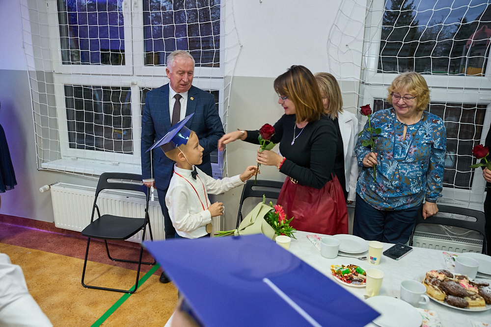 Szczególnym momentem było złożenie ślubowania oraz symboliczne pasowanie, które potwierdziło, że pierwszoklasiści stali się pełnoprawnymi uczniami szkoły – otrzymując dyplom pasowania. W dowód wdzięczności dzieci wręczyły nauczycielom kwiaty, dziękując za opiekę, cierpliwość i codzienne wsparcie.
