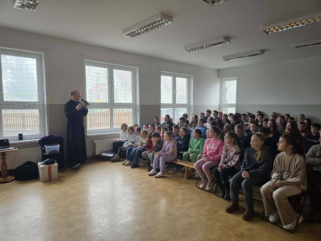 W dniach 4–6 marca uczniowie naszej szkoły uczestniczyli w rekolekcjach wielkopostnych, które poprowadził ks. Adrian Piecuch MSF – Misjonarz Świętej Rodziny. Bohaterem tegorocznych nauk był św. Józef Egipski – postać, która pokazuje, że nawet w trudnych momentach życia warto zaufać Bogu, pozostać wiernym swoim wartościom i nie tracić nadziei. Podczas spotkań uczniowie mieli okazję zatrzymać się na chwilę, zastanowić nad swoim życiem, relacjami z innymi oraz nad tym, jak w codzienności wybierać dobro. Był to czas refleksji, modlitwy i wspólnego odkrywania, że każdy z nas ma swoją drogę i swoje powołanie. Dziękujemy ks. Adrianowi za inspirujące słowo, świadectwo wiary i wspólnie spędzony czas. Niech przesłanie rekolekcji towarzyszy nam każdego dnia!