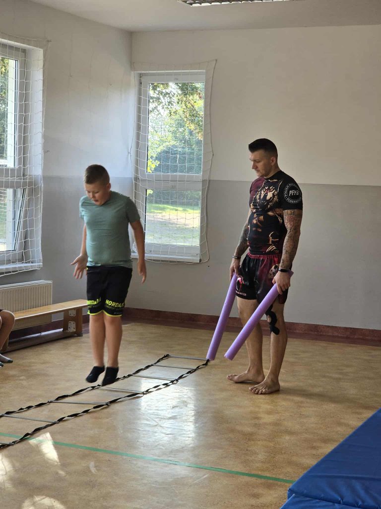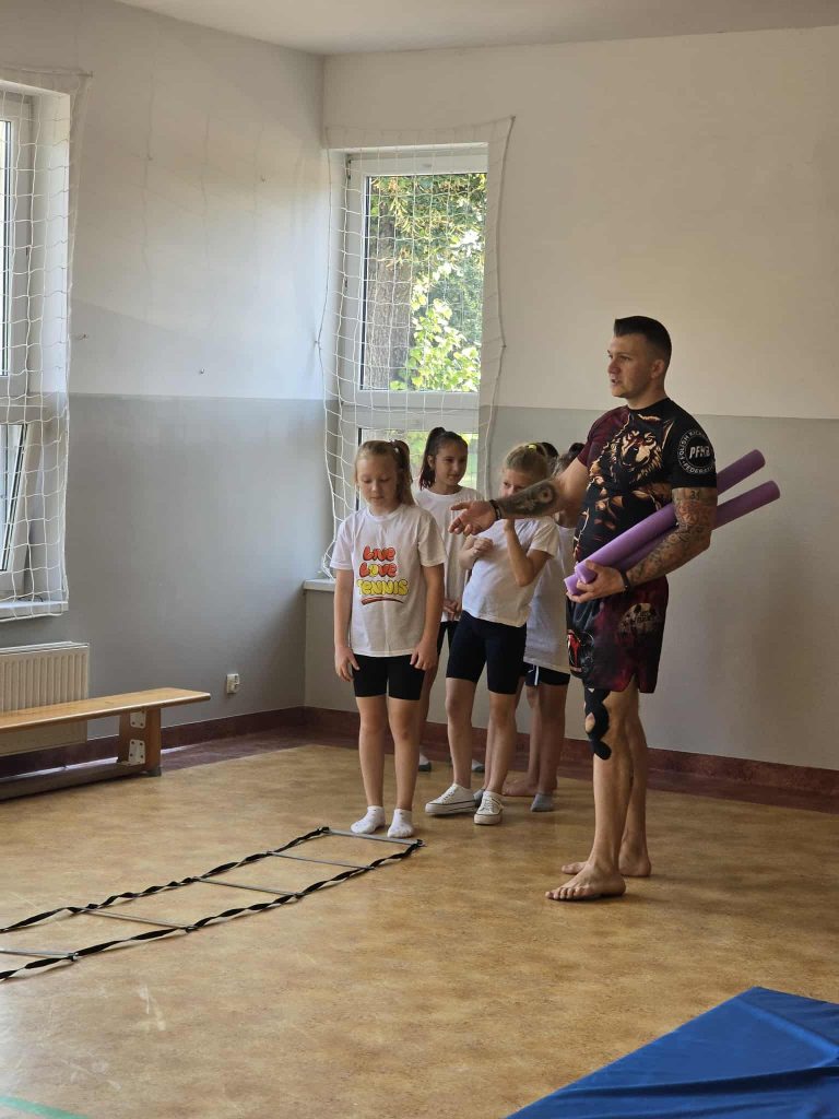 Pod okiem doświadczonego instruktora Pana Krzysztofa Kasperek z Krisss Fight Club uczniowie poznali najważniejsze zasady samoobrony – dowiedzieli się, jak unikać niebezpiecznych sytuacji, jak reagować w przypadku zagrożenia oraz w jaki sposób skutecznie wzywać pomoc. Młodsi uczestnicy uczyli się poprzez zabawę i proste ćwiczenia ruchowe, natomiast starsi mieli okazję przećwiczyć podstawowe techniki obronne dostosowane do ich wieku i możliwości.
