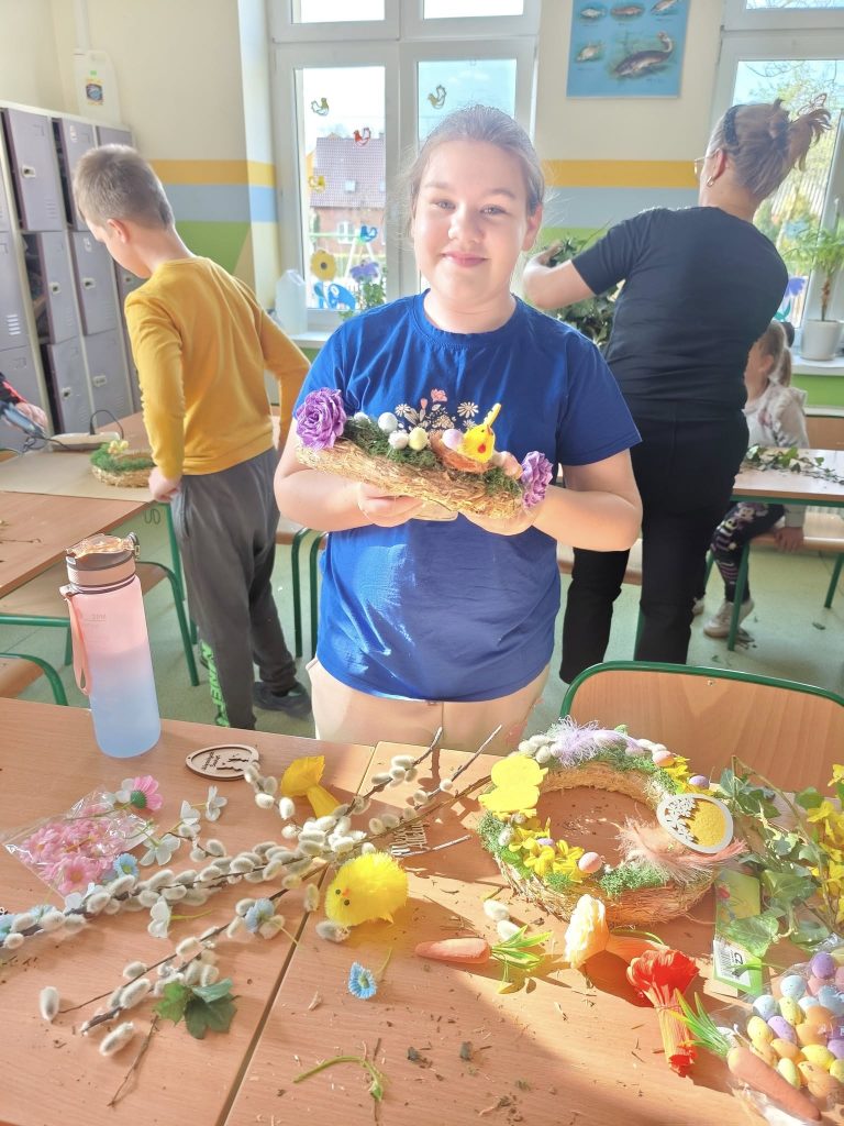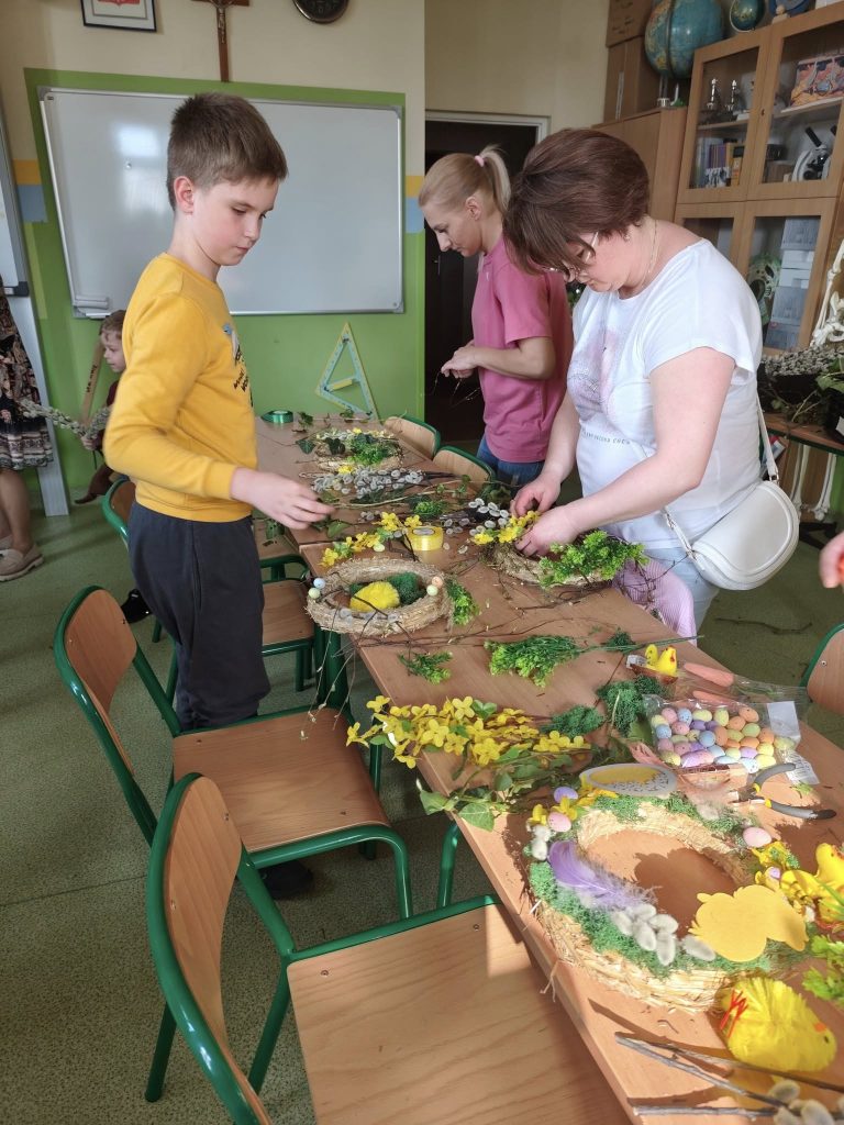 W poniedziałek 14 kwietnia, w naszej szkole odbyły się warsztaty wielkanocne dla Uczniów i Rodziców. Podczas spotkania uczestnicy wykonali wianki wielkanocne np. do zawieszenia na drzwi. Była to doskonała okazja do twórczej zabawy, rodzinnej integracji i przygotowania pięknych dekoracji na święta.